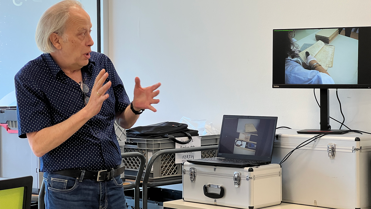 Die Besucher konnten einen umfassenden Einblick in die Arbeit der Abteilung und die technologische Entwicklung der vergangenen Jahre gewinnen. Arbeitsanleiter Manfred Schatzmann erklärte, wie altes Archivmaterial gereinigt, gesäubert und nicht nur Historisches für die Zukunft gesichert werden kann. Anschließend besichtigten die Gäste die Digitalisierungsabteilung, die mit modernsten Geräten und neuesten Verfahren überzeugt.
