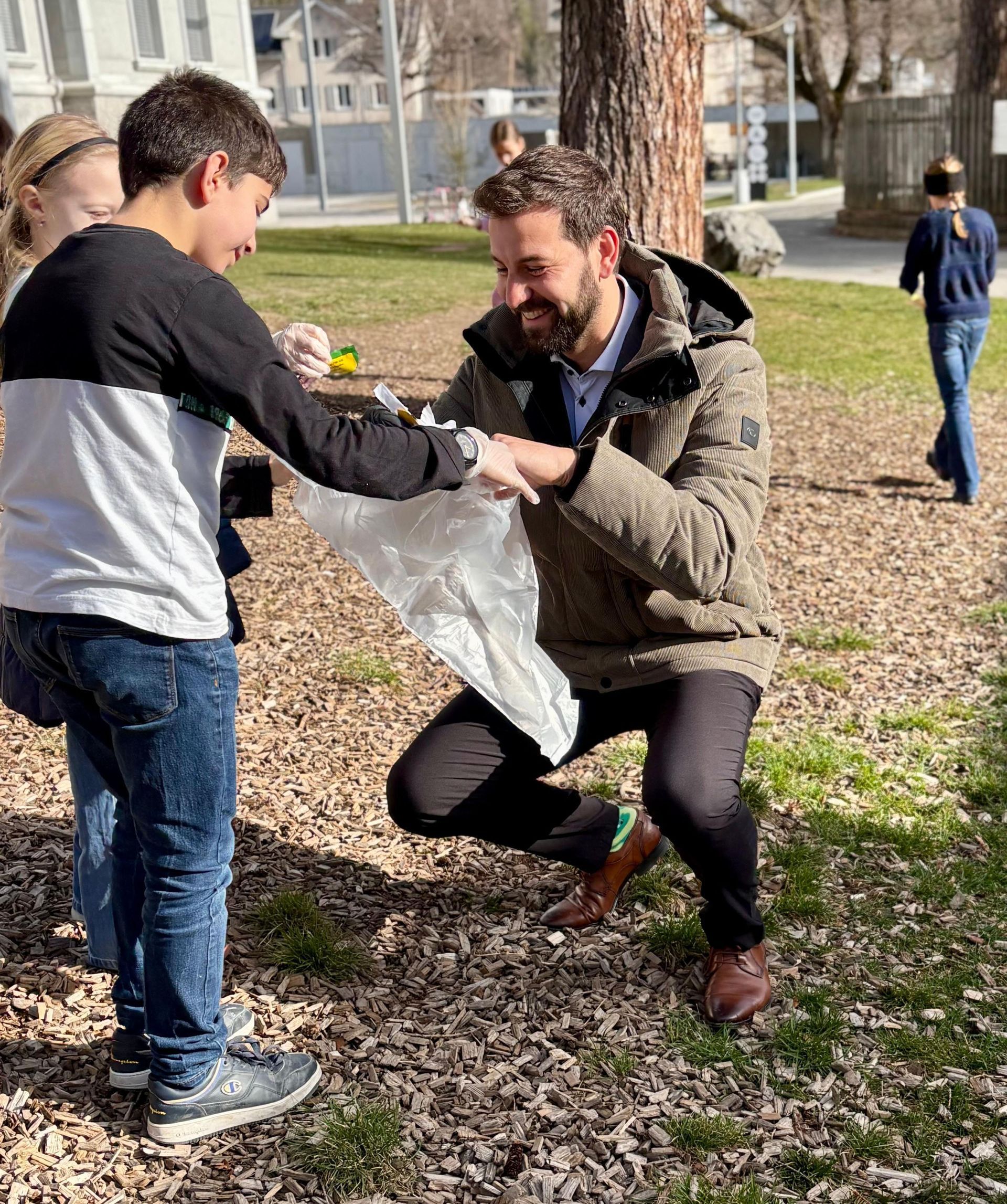 Im Anschluss an das Gespräch sammelten die Kinder gemeinsam mit den Gästen rund um die Schule Müll. Diese Aktion gehört für die vierten Klassen bereits zum Schulalltag: Mehrmals pro Woche treffen sie sich, um achtlos entsorgten Müll einzusammeln und so das Bewusstsein für Umwelt und Natur zu stärken. (pd)