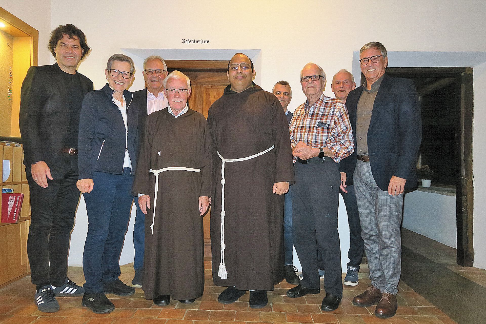 Mit Applaus, ehrlichen Worten und sichtlicher Dankbarkeit wurde Karl Martin Gort (4. v.l.) vom Freundeskreis der Kapuziner in Feldkirch aus seiner Funktion als Guardian verabschiedet. Der gebürtige Göfner blickt auf ein außergewöhnlich engagiertes Leben im Dienste des Kapuzinerordens zurück – als Priester, Bruder, Provinzial und mehrfacher Guardian, unter anderem in Wien und zuletzt in Feldkirch.