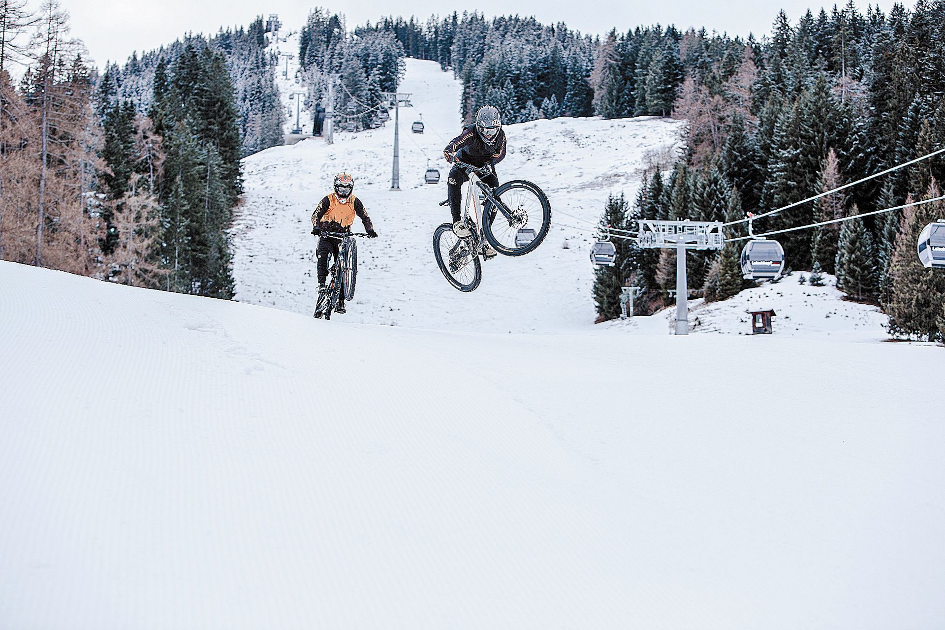 Montainbike-Action auf Schnee