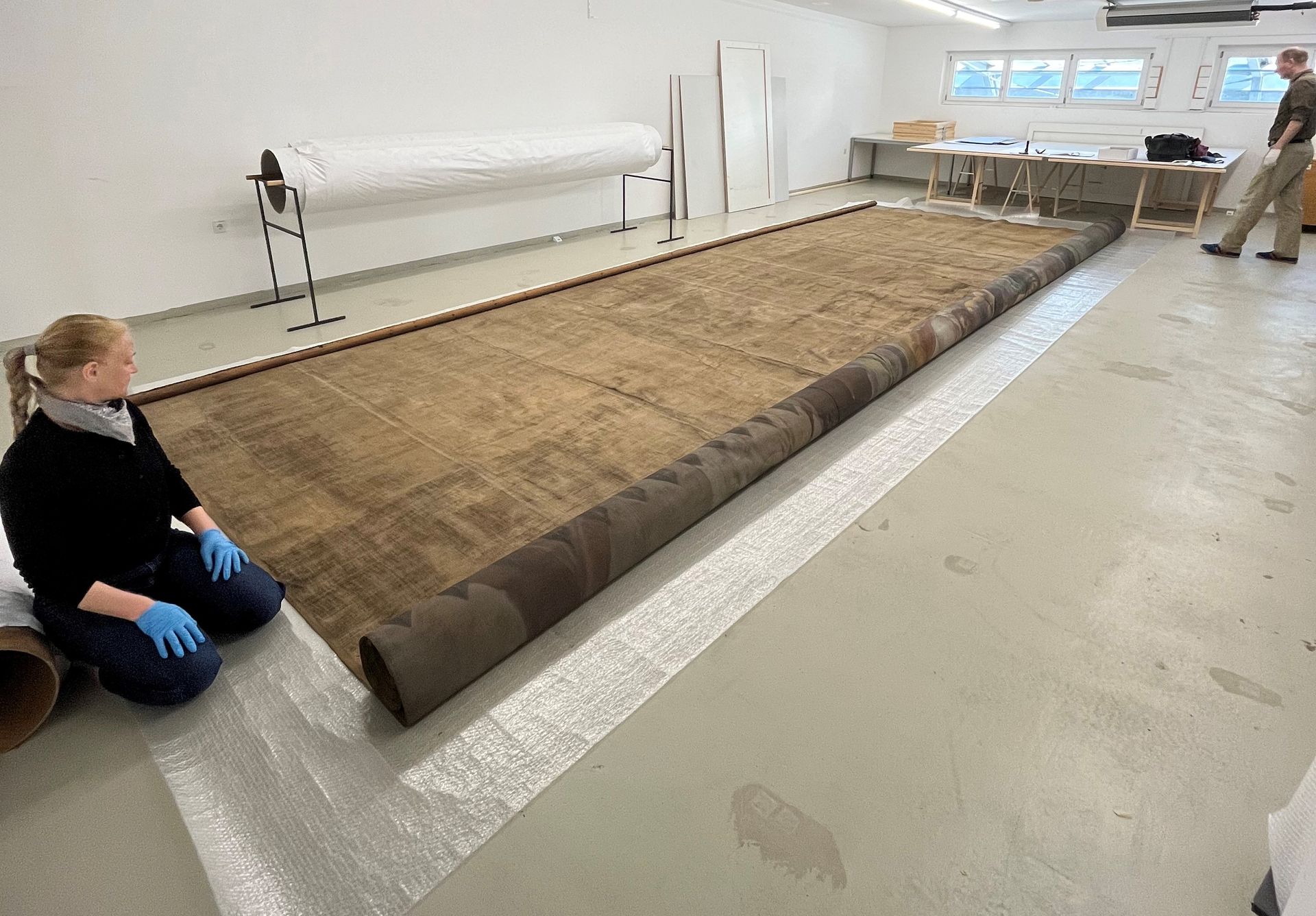 Tuch aus dem Jahr 1740 gereinigt und konserviert