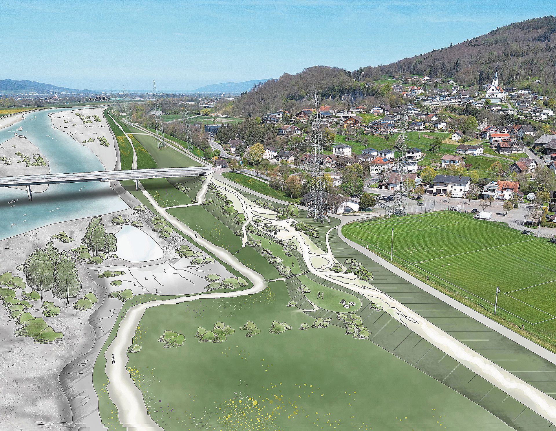 Rund 630 Dokumente wurden erstellt. Die Projektleitung koordiniert auch Drittprojekte, etwa zu Strom- und Gasleitungen. Die Rheinvorländer wurden auf PFAS untersucht. Weitere Abklärungen sind nötig, verbindliche Grenzwerte für Böden fehlen bislang aber noch. Die Aufweitung des Rheins soll den Hochwasserschutz verbessern, Lebensräume für Flora und Fauna schaffen und die Aufenthaltsqualität für die Bevölkerung erhöhen. Geplant sind 13 parkähnliche Aufenthaltsräume mit Zugang zum Wasser, Sitzgelegenheiten und Liegewiesen. Ab Frühjahr 2026 tourt ein Rhesi-Bauwagen mit Mini-Ausstellung durch das Rheintal. Premiere ist Ende April 2026 an der RHEMA in Altstätten. (pd)